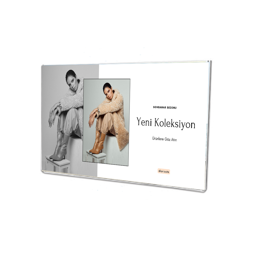 Bu model masaüstü stand değildir. Duvar, cam, panel veya düz yüzeylere sabitlenerek kullanılır. Şeffaf pleksi malzeme sayesinde içerik net biçimde görünür, gereksiz çerçeve kalınlığı veya dikkat dağıtan tasarım unsurları oluşturmaz.