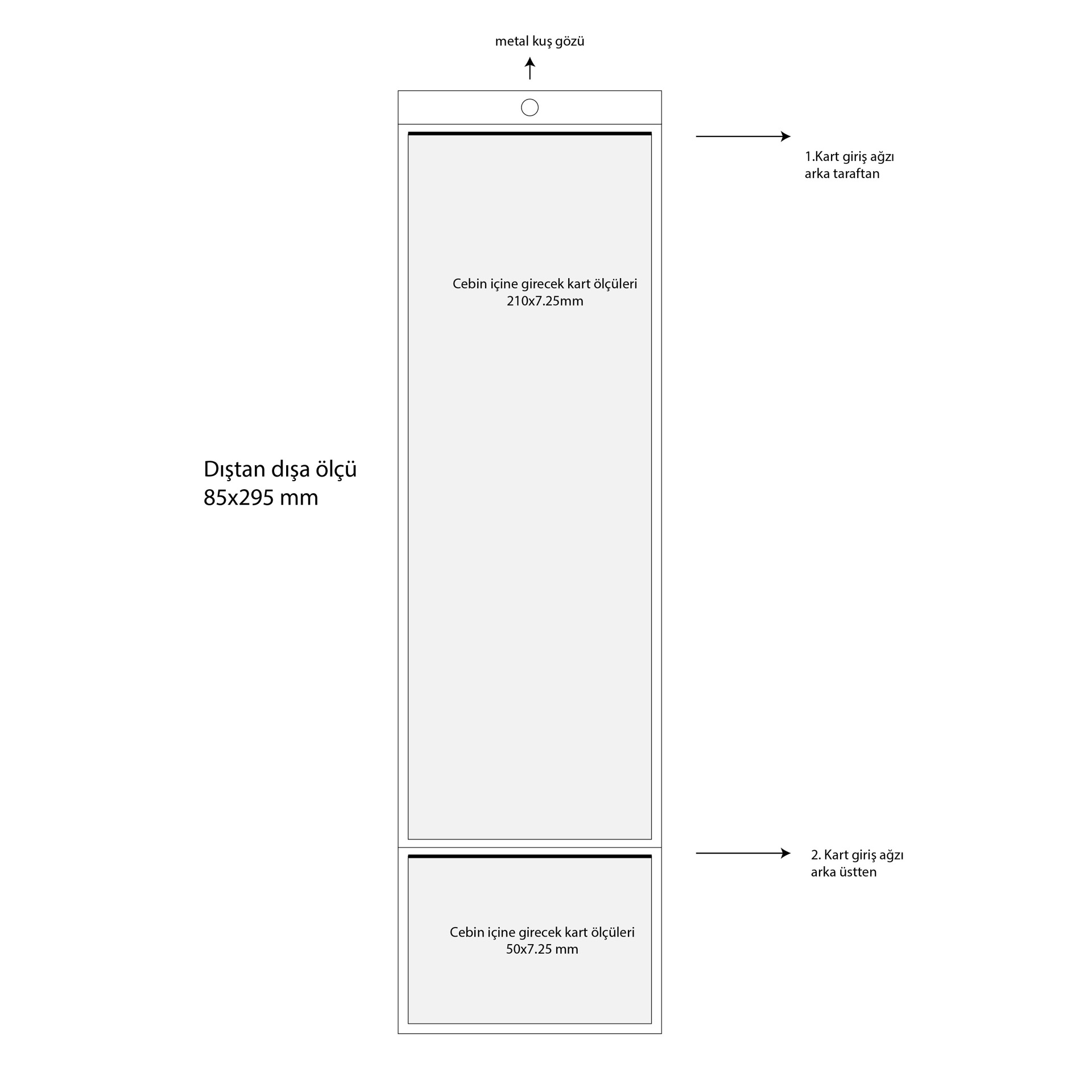 Fiyat etiket cebi 2 girişlidir. Yumuşak PVC’den üretilmiştir. Market, mağaza, showroom’larda ürün bilgileri, fiyat bilgisi içeren etiketleri yerleştirmek ve sergilemek için kullanılır. Özel boyutlarda da üretilir. Cebi asmak için kılçık yada ayrıca zincir kullanabilirsiniz.