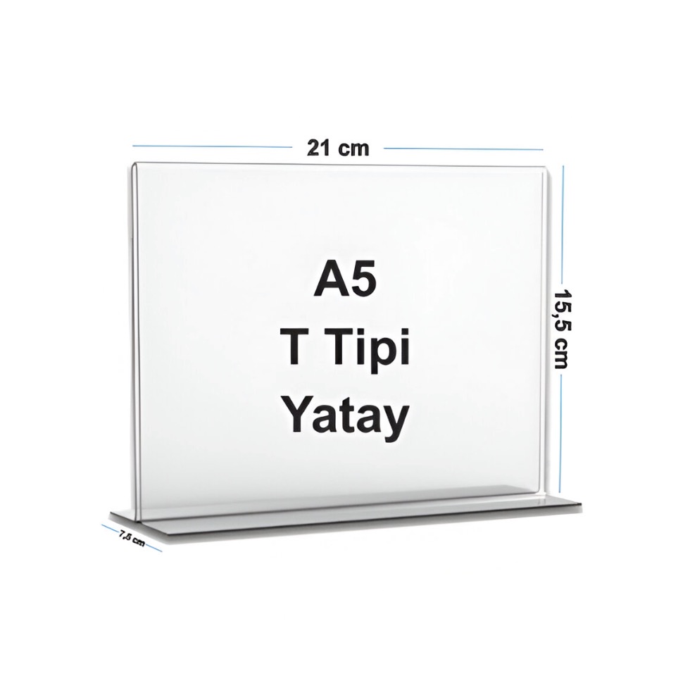 A5 boyutu, hem masa hem de tezgâh üzerinde fazla yer kaplamadan maksimum görünürlük sağlar. Çift taraflı yapısı sayesinde bir yüzünde duyuru, diğer yüzünde iletişim bilgileri veya kurumsal logolar yer alabilir.