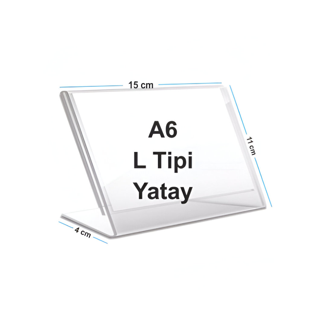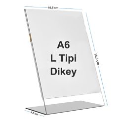 A6 (105mm x 148mm) L Tipi Dikey Masaüstü Föylük, aynı zamanda broşürlük, menü tutucu ve fiyatlık olarak da kullanılabilen çok amaçlı bir tanıtım standıdır. Şeffaf ve zarif yapısı sayesinde, masaüstünde veya tezgâh üzerinde sergilenmesi gereken tüm föy, broşür, fiyat listesi ve bilgilendirme kartlarını profesyonel bir görünümle sunar.