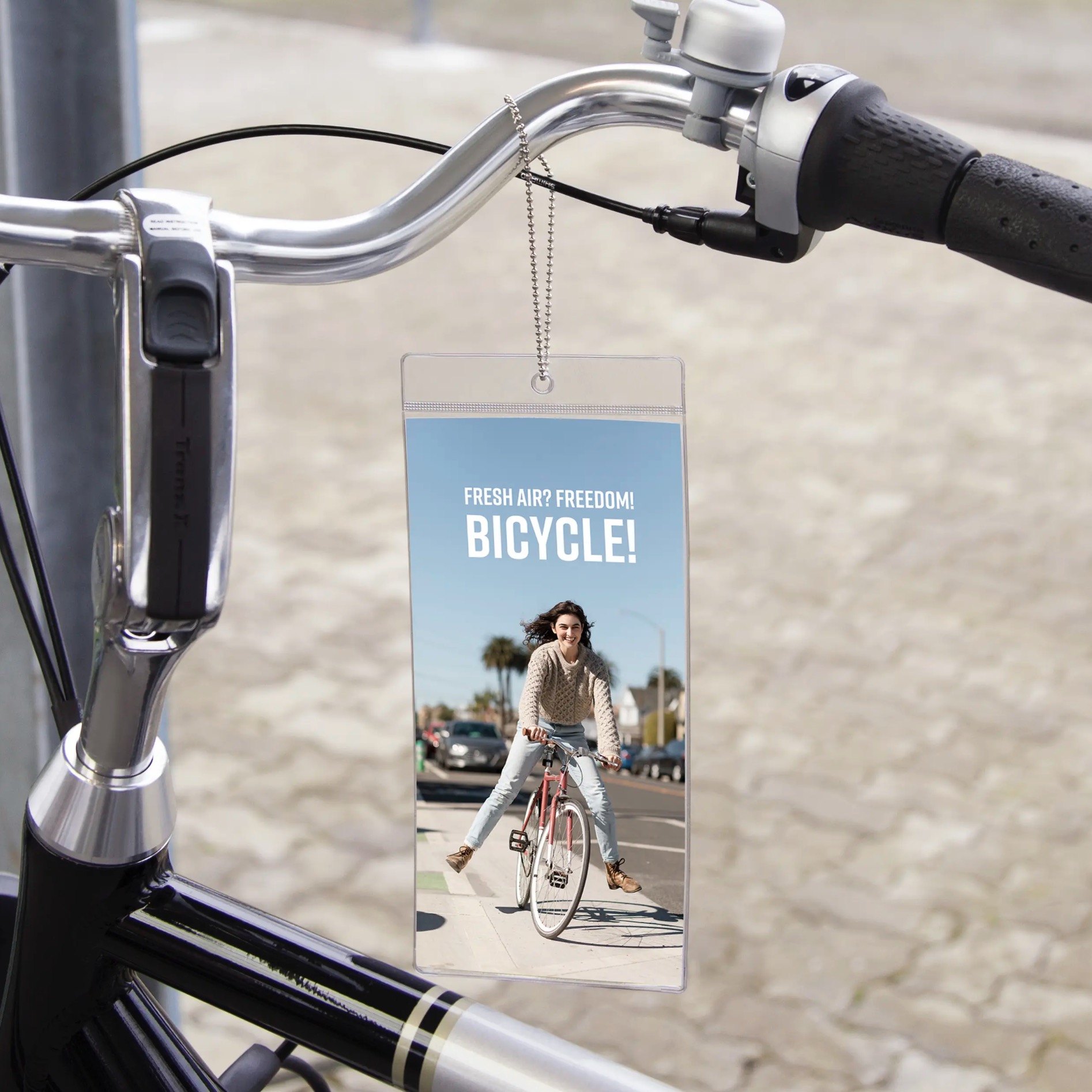 Cebin ölçüsü dıştan dışa 12×23 cm olup, raf, askı veya ürün yanında sergilenecek etiketler için idealdir; Ayrıca isteğe göre özel ölçülerde üretim yapılabilir; Cebi asmak için kılçık, zincir veya ip kullanılabilir;