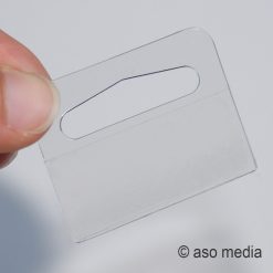 Plastik yapışkanlı ürün askısı, market ve mağazalarda sergilenecek ürünlere veya ürün kutularına yapıştırabileceğiniz, arkası kendinden yapışkanlı pratik bir üründür. 35×40 mm ölçülerinde, 350 mikron doğa dostu APET malzemeden üretilmiştir.