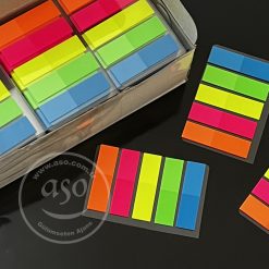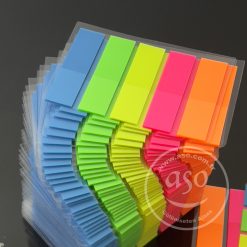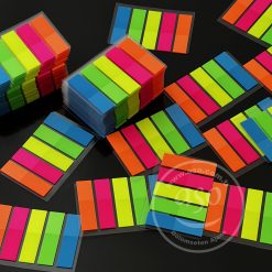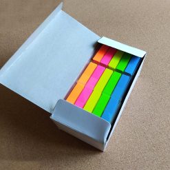 5 renkli postit promosyon ayraç, çeşitli renklerde küçük yapışkanlı not kağıtlarından oluşan bir settir. Bu set genellikle bir promosyon ürünü olarak verilir ve kullanıcılara belgelerini, kitaplarını veya dergilerini işaretlemeleri veya önemli notlarını yazmaları için küçük ve kullanışlı bir seçenek sunar.