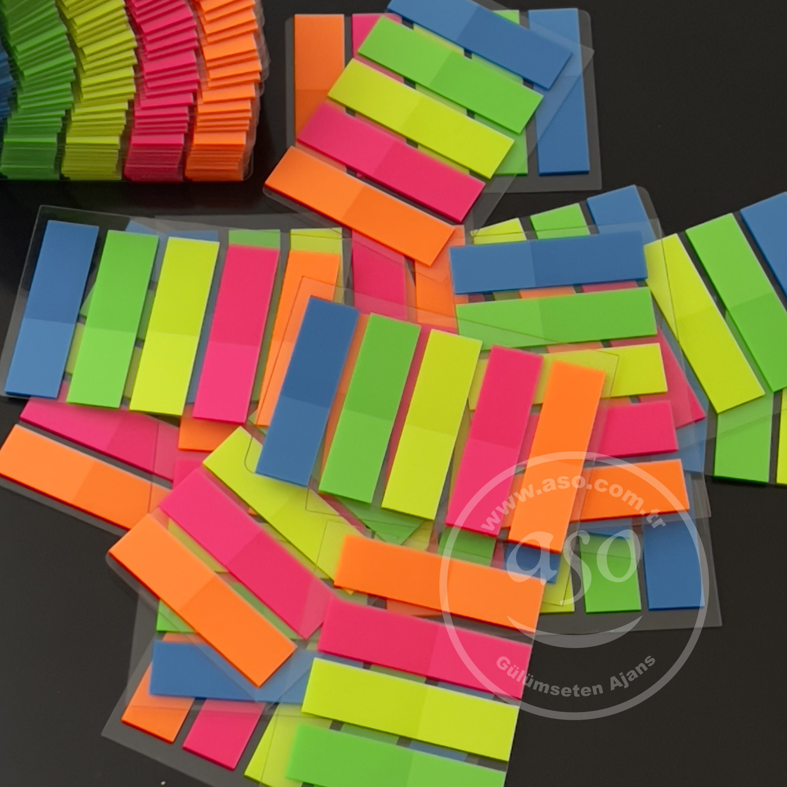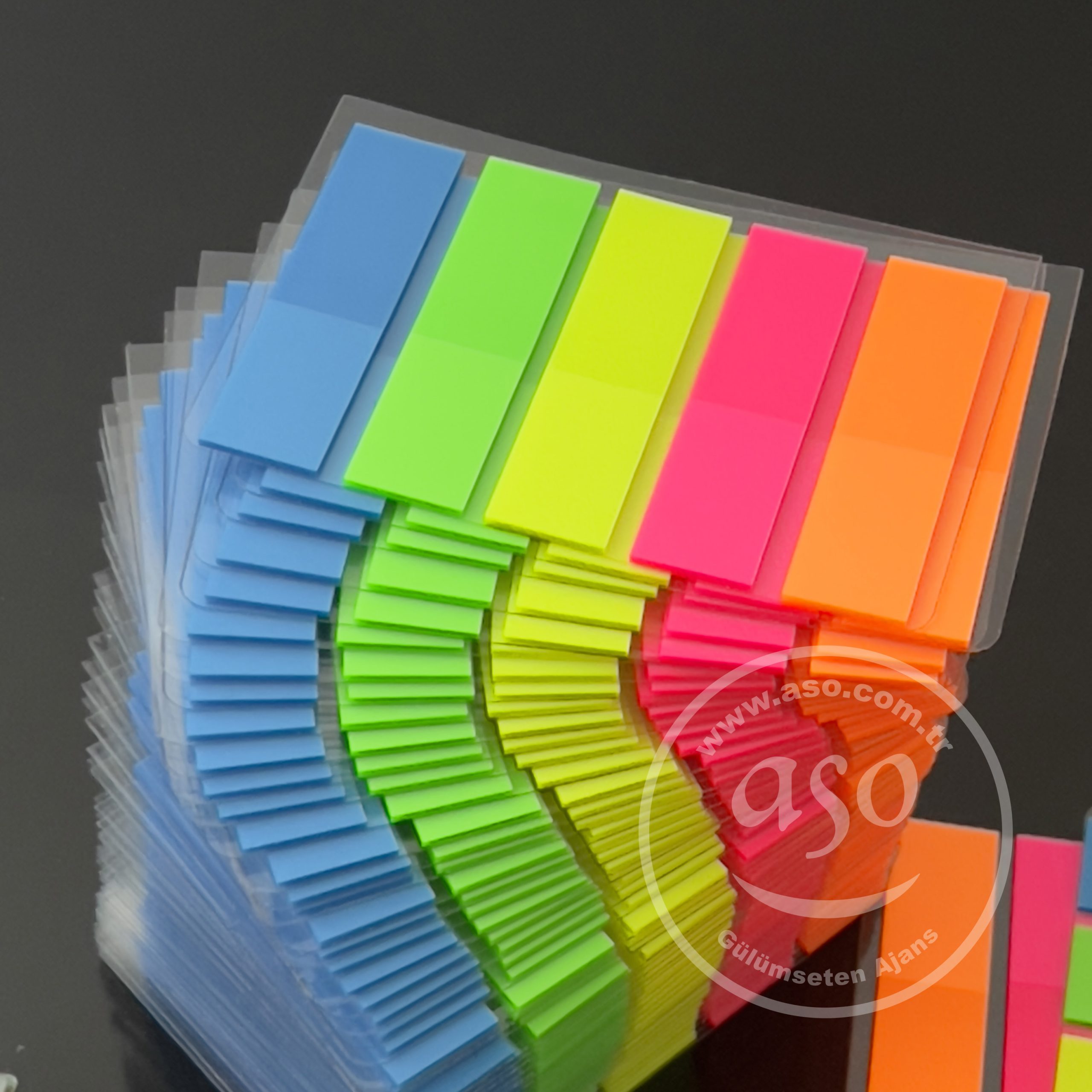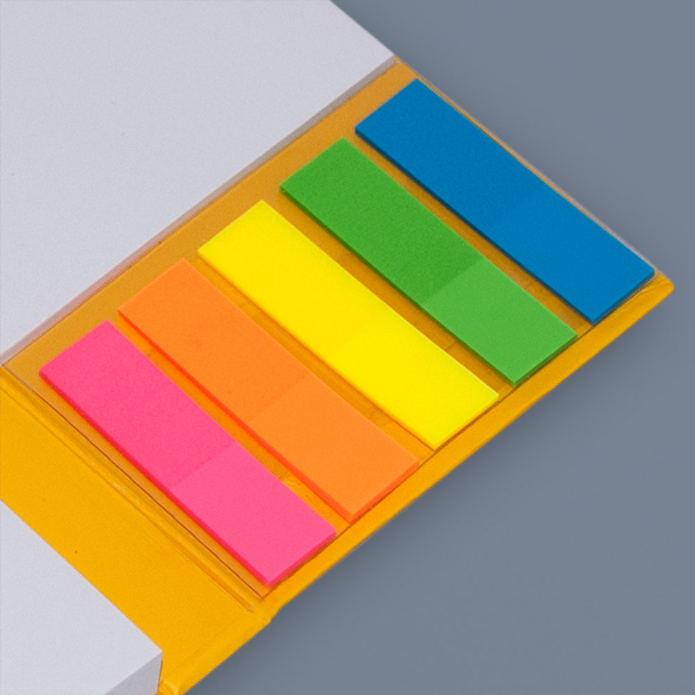 Promosyon üreticileri, Küp bloknotlarda, kalın kapaklı yapışkanlı notluklarda, farklı promosyon ürünlerinde renkli ayraçları kullanabilirsiniz.