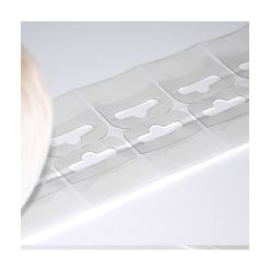 Plastik yapışkanlı ürün askı etiketleri, market ve mağazalarda sergilenecek ürünlere veya ürün kutularına yapıştırabileceğiniz, arkası kendinden yapışkanlı pratik bir üründür. 50×50 mm, açık ölçüsü 100x50mm ölçülerinde, 275 mikron doğa dostu APET malzemeden üretilmiştir. Şeffaf yapışkanlı askı etiketinin 28 mm’lik bölümü yapışkanlıdır. askı etiketi çift yüzeyden ürüne yapışıır. Bu nedenle 600 gr ağırlığa kadar olan ürünleri taşıyabilir.