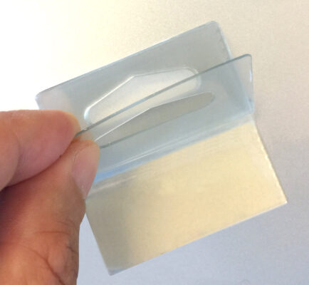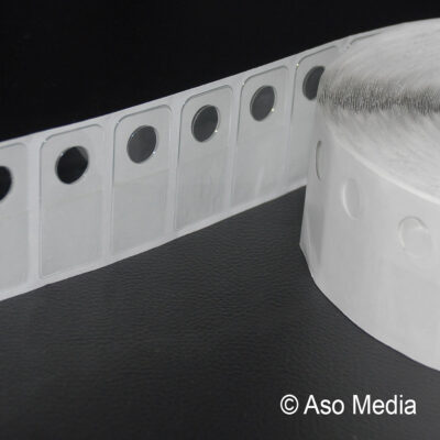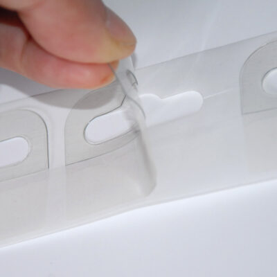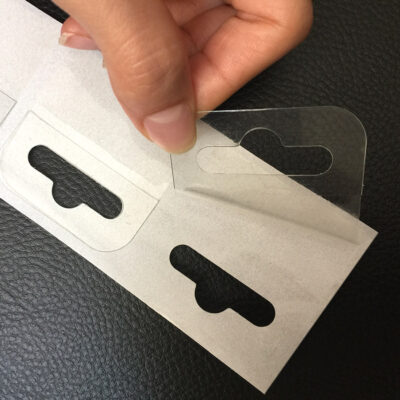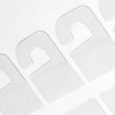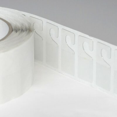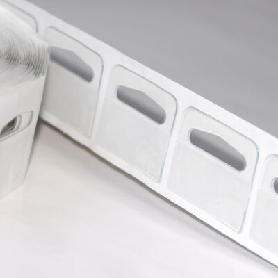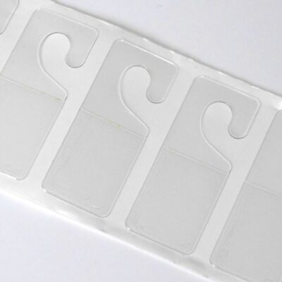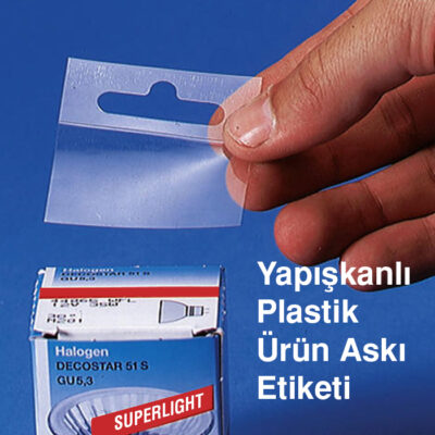 Yapışkanlı Askı etiketi üreticisi olan işletmemiz, geniş ürün yelpazesiyle ürünlerinizin market ve mağaza raf çubuklarına asılarak sergilenmesini sağlar. Sert veya yumuşak yapışma alanı ile farklı ürünler mükemmel tutuculuk sağlar. Euro kesim, delta kesim, kanca kesim ve yuvarlak kesim olmak üzere farklı kesim şekillerde üretim yapıyoruz. Yapışkanlı askı etiketlerimiz 170 gramdan 500 grama kadar farklı ağırlıklardaki ürünleri taşıma mukavemetine sahiptir.